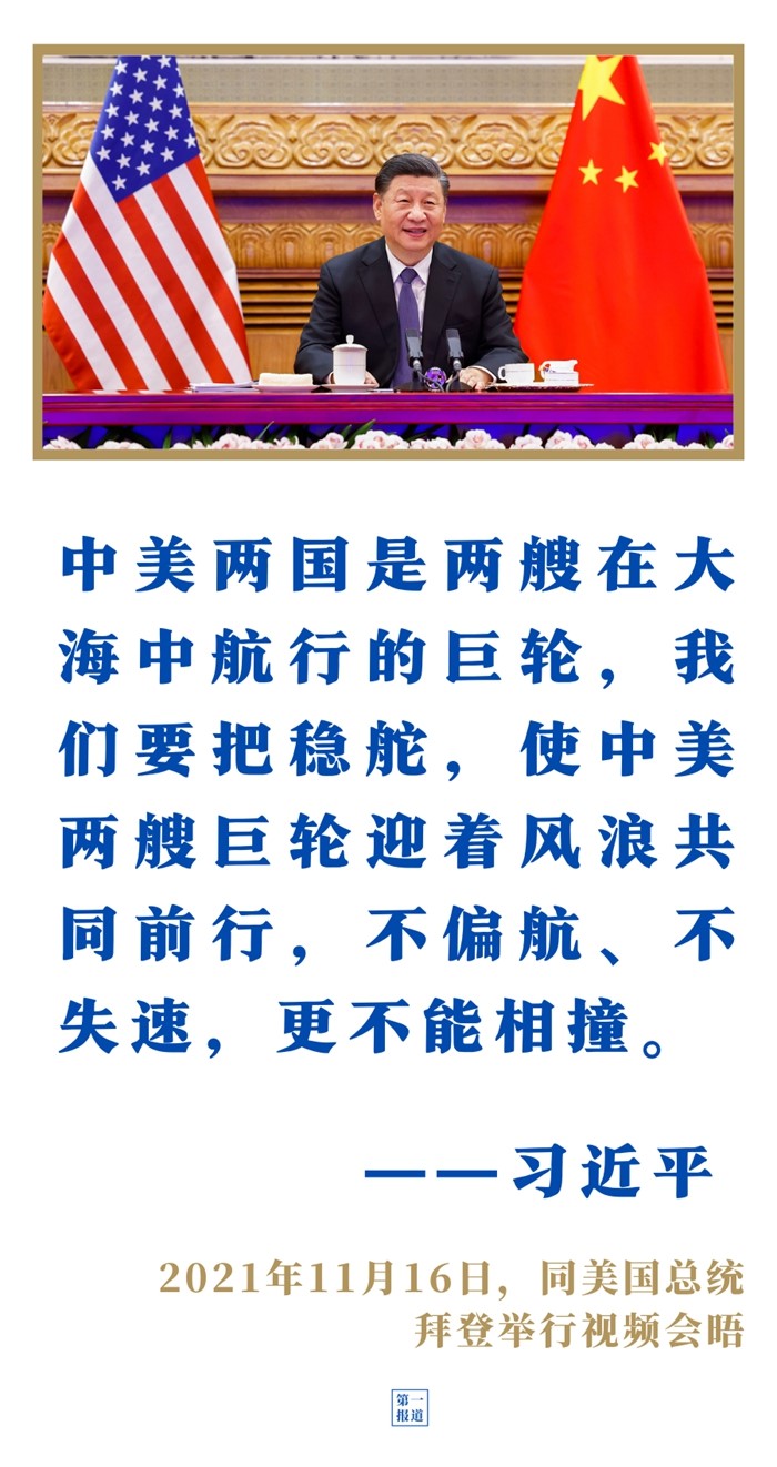 習(xí)近平主席同美國(guó)總統(tǒng)拜登舉行視頻會(huì)晤時(shí),提出中美相互尊重、和平共處、合作共贏三點(diǎn)原則和應(yīng)當(dāng)著力推動(dòng)的四方面優(yōu)先事項(xiàng),為中美關(guān)系的未來(lái)走向明確了基本框架。