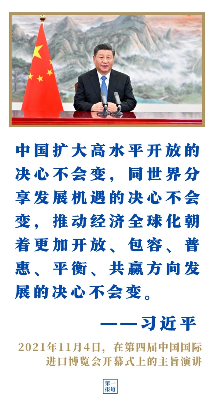 第四屆進(jìn)博會(huì)上,習(xí)近平主席表示,中國(guó)愿同各國(guó)共建開(kāi)放型世界經(jīng)濟(jì),讓開(kāi)放的春風(fēng)溫暖世界;第三次“一帶一路”建設(shè)座談會(huì)上,習(xí)近平主席強(qiáng)調(diào)以高標(biāo)準(zhǔn)、可持續(xù)、惠民生為目標(biāo),繼續(xù)推動(dòng)共建“一帶一路”高質(zhì)量發(fā)展。