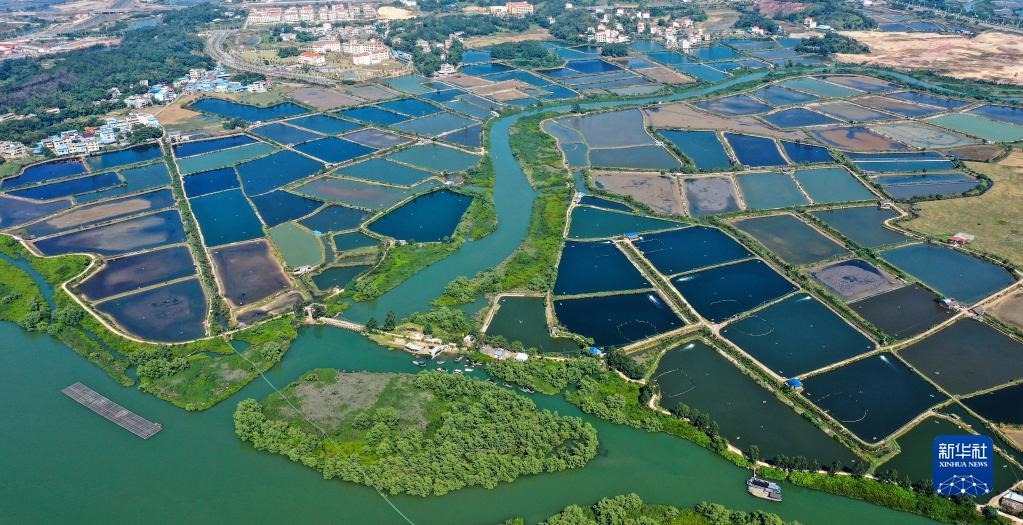 這是廣西欽州市欽南區(qū)沙埠鎮(zhèn)船埠環(huán)村的冬日蝦塘景色(11月25日攝,無人機照片)。新華社記者張愛林?jǐn)z