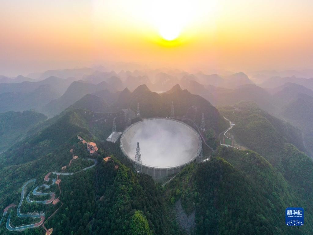 3月31日清晨拍攝的“中國天眼”全景(維護(hù)保養(yǎng)期間拍攝,無人機照片)。新華社記者歐東衢攝