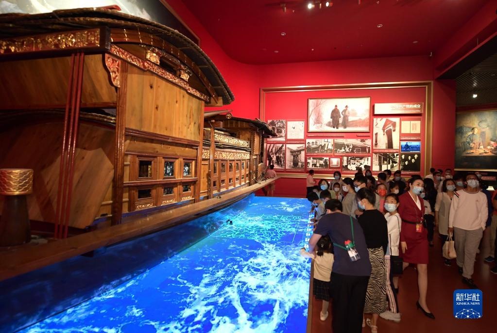 觀眾在中國(guó)共產(chǎn)黨歷史展覽館參觀(2021年10月1日攝)。新華社記者李賀攝