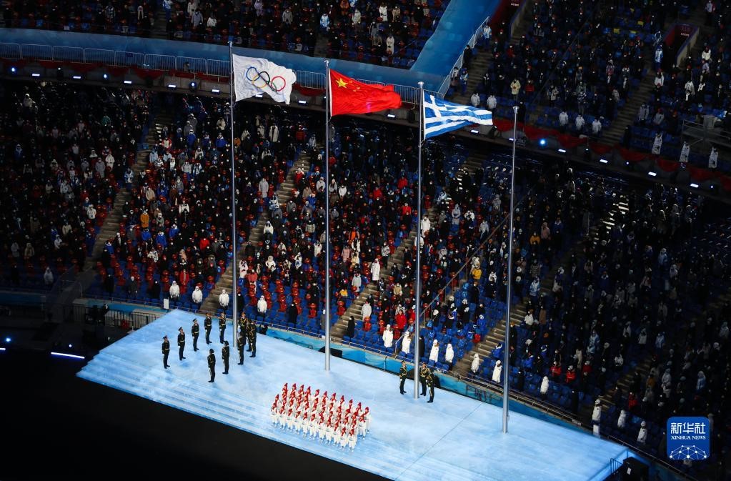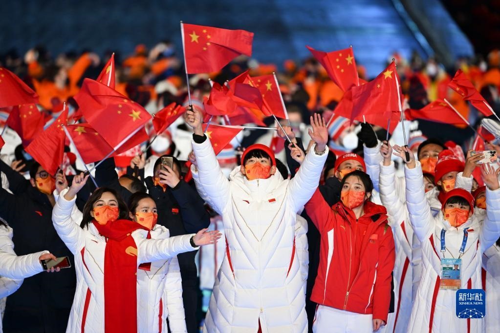 這是中國(guó)代表團(tuán)成員在閉幕式上入場(chǎng)。