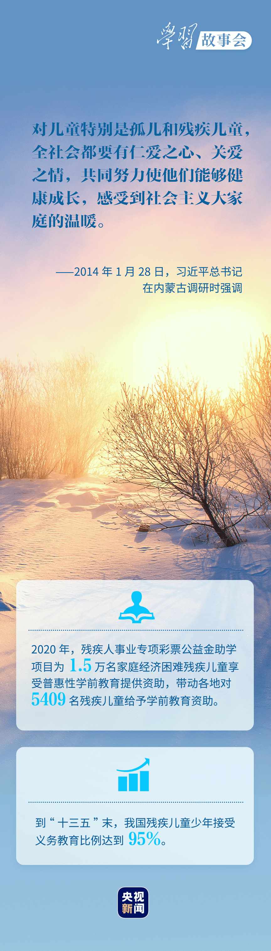 考察河北唐山市截癱療養(yǎng)院,看望呼和浩特市兒童福利院的孤殘兒童,會見殘疾人群體代表.....無論春夏秋冬,總書記對殘疾人群體的殷殷關懷溫潤心田。