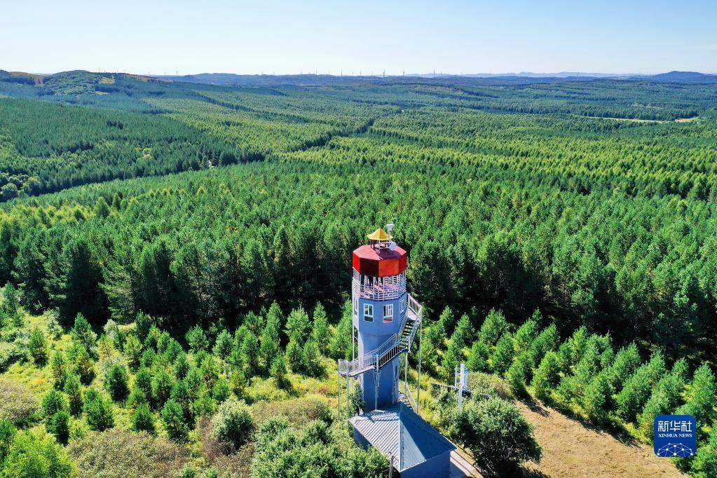 河北塞罕壩機械林場內的望海樓(2021年8月23日攝,無人機照片)。新華社記者牟宇攝