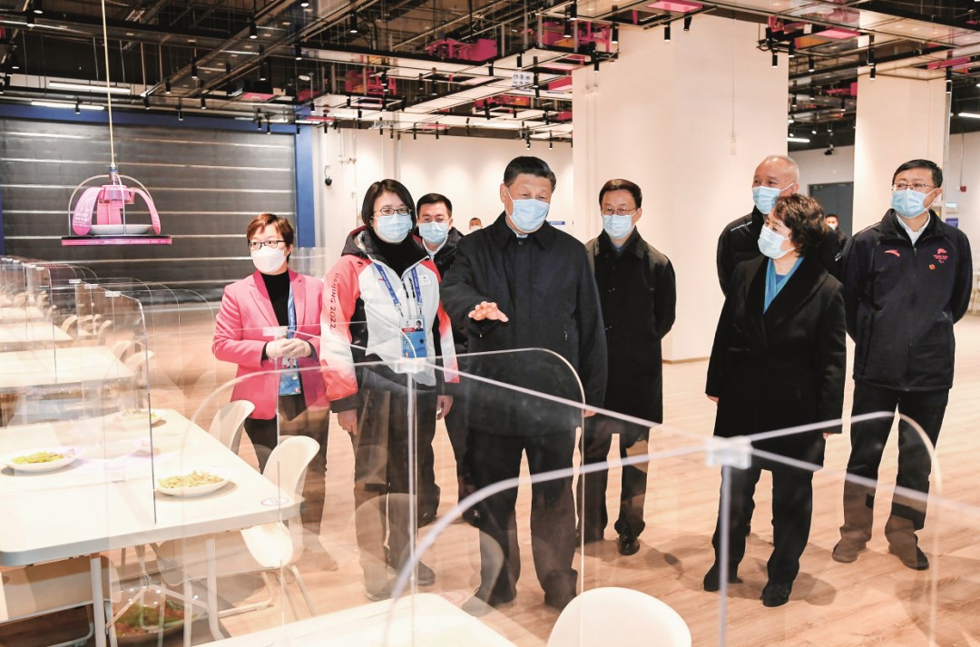 2022年1月4日,中共中央總書(shū)記、國(guó)家主席、中央軍委主席習(xí)近平在北京考察2022年冬奧會(huì)、冬殘奧會(huì)籌辦備賽工作。圖為1月4日上午,習(xí)近平在北京冬奧會(huì)、冬殘奧會(huì)主媒體中心智慧餐廳,察看智能餐飲設(shè)備運(yùn)行情況。圖/新華社記者