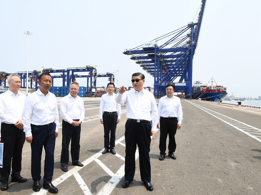 12日上午,習近平總書記來到位于海南省儋州市的洋浦經(jīng)濟開發(fā)區(qū),先后考察了洋浦展示館、洋浦國際集裝箱碼頭小鏟灘港區(qū),了解洋浦經(jīng)濟開發(fā)區(qū)發(fā)展和中國特色自由貿(mào)易港建設等情況。(文字記者:張曉松、朱基釵;攝影記者:李學仁、謝環(huán)馳、燕雁)