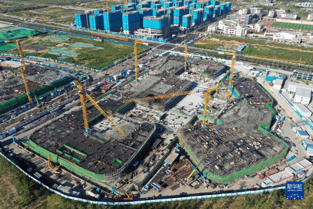 位于雄安新區(qū)啟動(dòng)區(qū)的中國(guó)星網(wǎng)雄安新區(qū)總部大樓建設(shè)施工現(xiàn)場(chǎng)(2022年9月7日攝,無(wú)人機(jī)照片)。新華社記者 朱旭東 攝