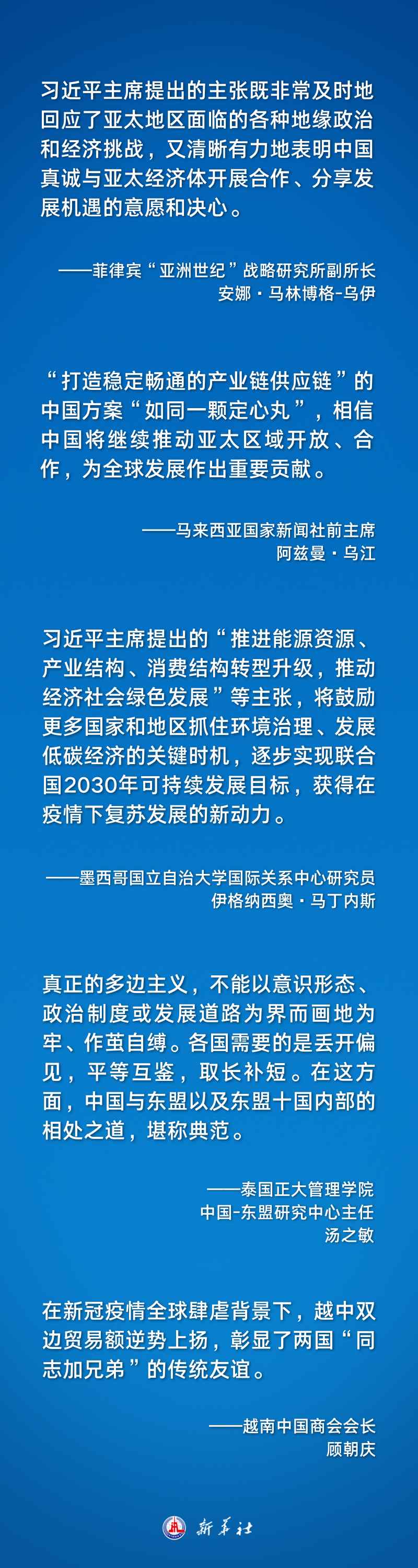安娜·馬林博格-烏伊認為,習(xí)近平主席提出的主張既非常及時地回應(yīng)了亞太地區(qū)面臨的各種地緣政治和經(jīng)濟挑戰(zhàn),又清晰有力地表明中國真誠與亞太經(jīng)濟體開展合作、分享發(fā)展機遇的意愿和決心。