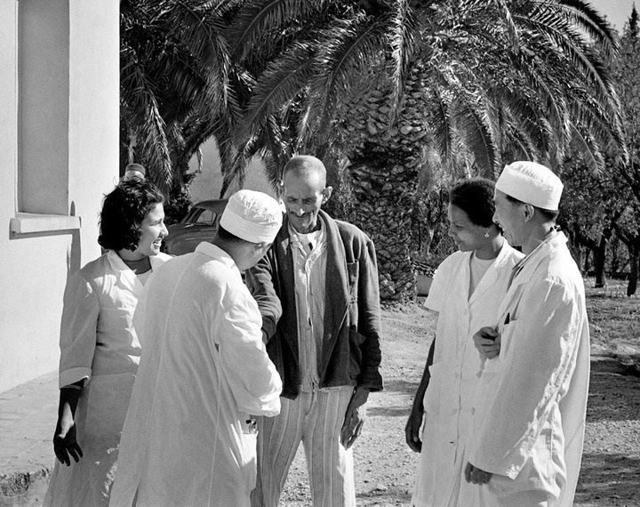 1966年12月14日,中國(guó)醫(yī)療隊(duì)與一名阿爾及利亞患者交談。新華社發(fā)