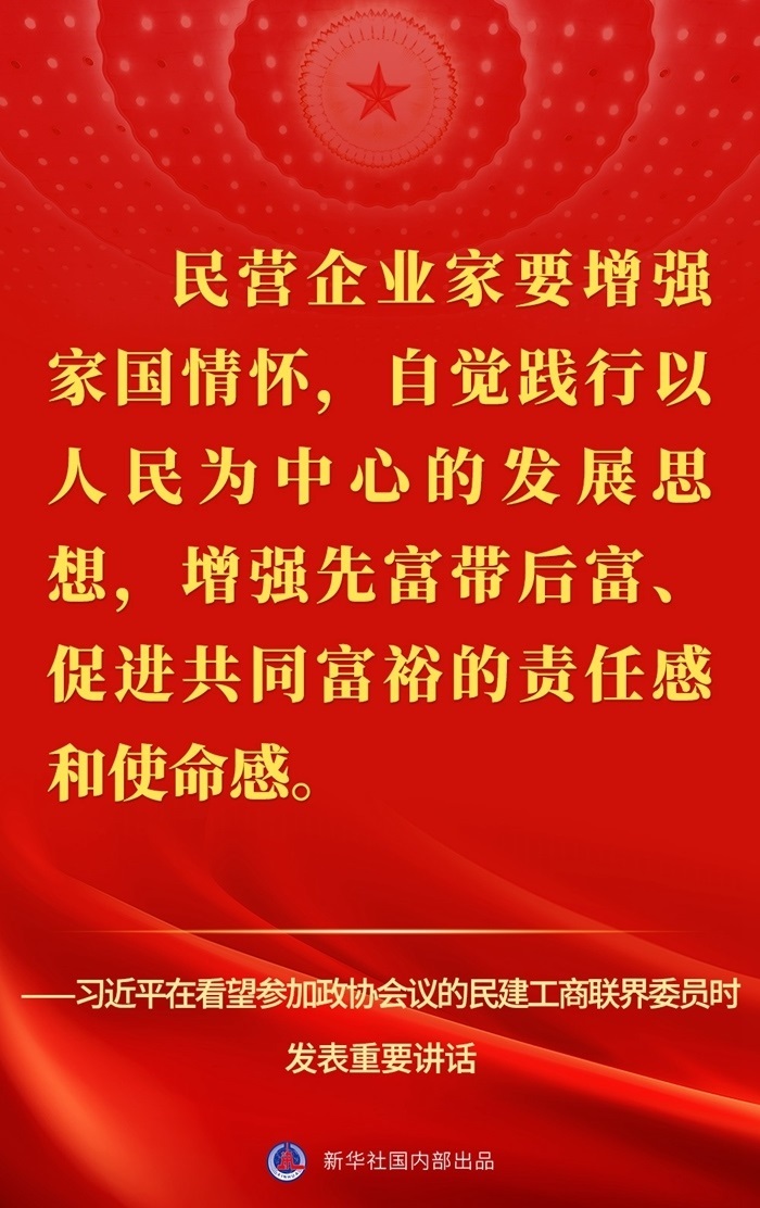 “黨中央始終堅持‘兩個毫不動搖’、‘三個沒有變’,始終把民營企業(yè)和民營企業(yè)家當(dāng)作自己人。”3月6日,習(xí)近平總書記在看望參加全國政協(xié)十四屆一次會議的民建、工商聯(lián)界委員并參加聯(lián)組會時發(fā)表重要講話,強調(diào)要引導(dǎo)民營企業(yè)和民營企業(yè)家正確理解黨中央方針政策,增強信心、輕裝上陣、大膽發(fā)展。