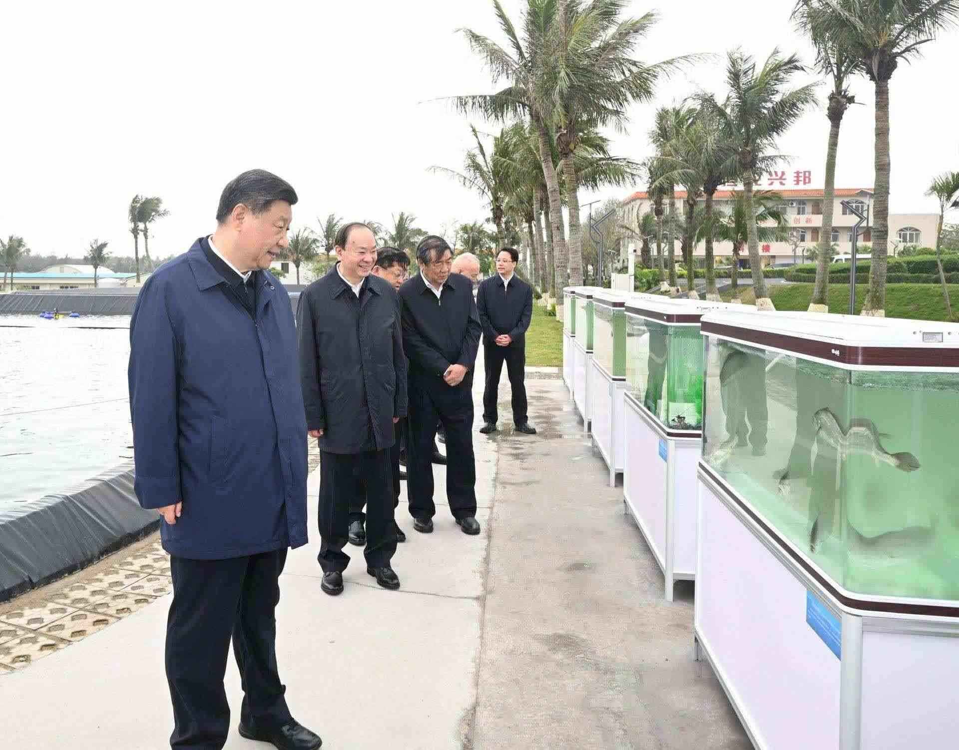 △2023年4月10日,習(xí)近平總書記在廣東湛江國家863計劃項(xiàng)目海水養(yǎng)殖種子工程南方基地考察調(diào)研。