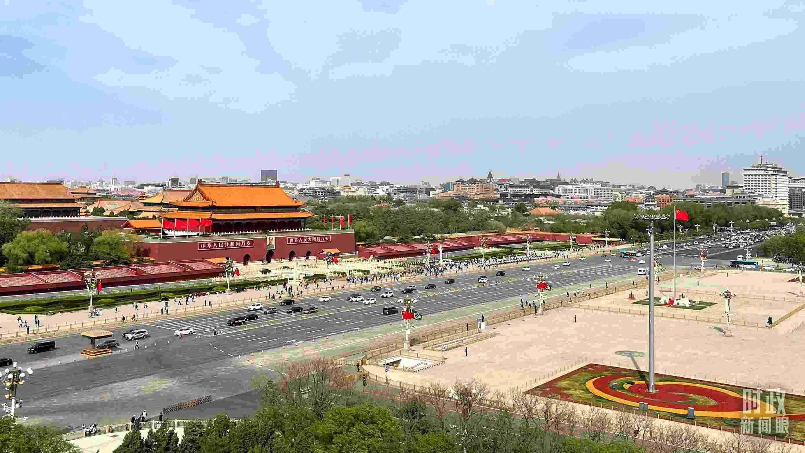 △長安街兩側懸掛起中巴兩國國旗。(總臺央視記者陸泓宇拍攝)
