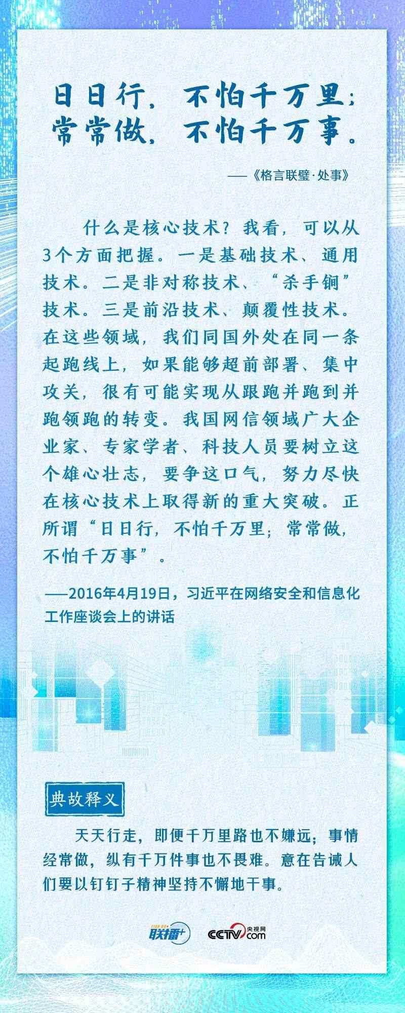 “知屋漏者在宇下,知政失者在草野”“日日行,不怕千萬里;常常做,不怕千萬事”......2016年4月19日,習近平總書記在網(wǎng)絡(luò)安全和信息化工作座談會上,從六個方面深刻回答了事關(guān)我國網(wǎng)信事業(yè)發(fā)展的一系列重大理論和實踐問題,并多次引經(jīng)據(jù)典加以闡述。