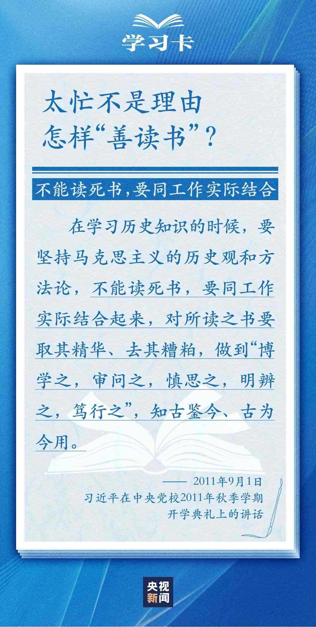 學(xué)習(xí)卡丨怎么“選好書”,如何把書讀活?總書記這樣說