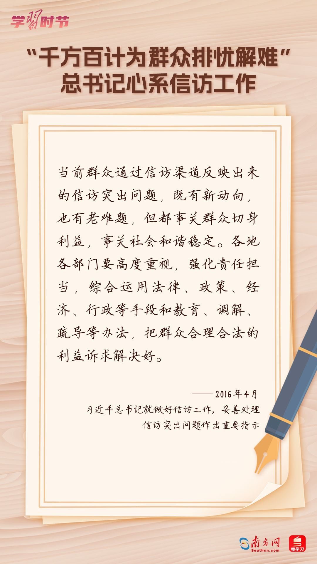 2022年5月1日,中共中央、國(guó)務(wù)院印發(fā)的《信訪(fǎng)工作條例》正式實(shí)施。《信訪(fǎng)工作條例》以習(xí)近平新時(shí)代中國(guó)特色社會(huì)主義思想為指導(dǎo),深入貫徹習(xí)近平總書(shū)記關(guān)于加強(qiáng)和改進(jìn)人民信訪(fǎng)工作的重要思想,總結(jié)黨長(zhǎng)期以來(lái)領(lǐng)導(dǎo)和開(kāi)展信訪(fǎng)工作經(jīng)驗(yàn)特別是黨的十八大以來(lái)信訪(fǎng)工作制度改革成果,堅(jiān)持和加強(qiáng)黨對(duì)信訪(fǎng)工作的全面領(lǐng)導(dǎo),理順信訪(fǎng)工作體制機(jī)制,是新時(shí)代信訪(fǎng)工作的基本遵循。今年5月1日是《信訪(fǎng)工作條例》實(shí)施一周年,“學(xué)習(xí)時(shí)節(jié)”整理摘錄習(xí)近平總書(shū)記關(guān)于信訪(fǎng)工作的重要講話(huà)和重要指示批示,與您一同學(xué)習(xí)。