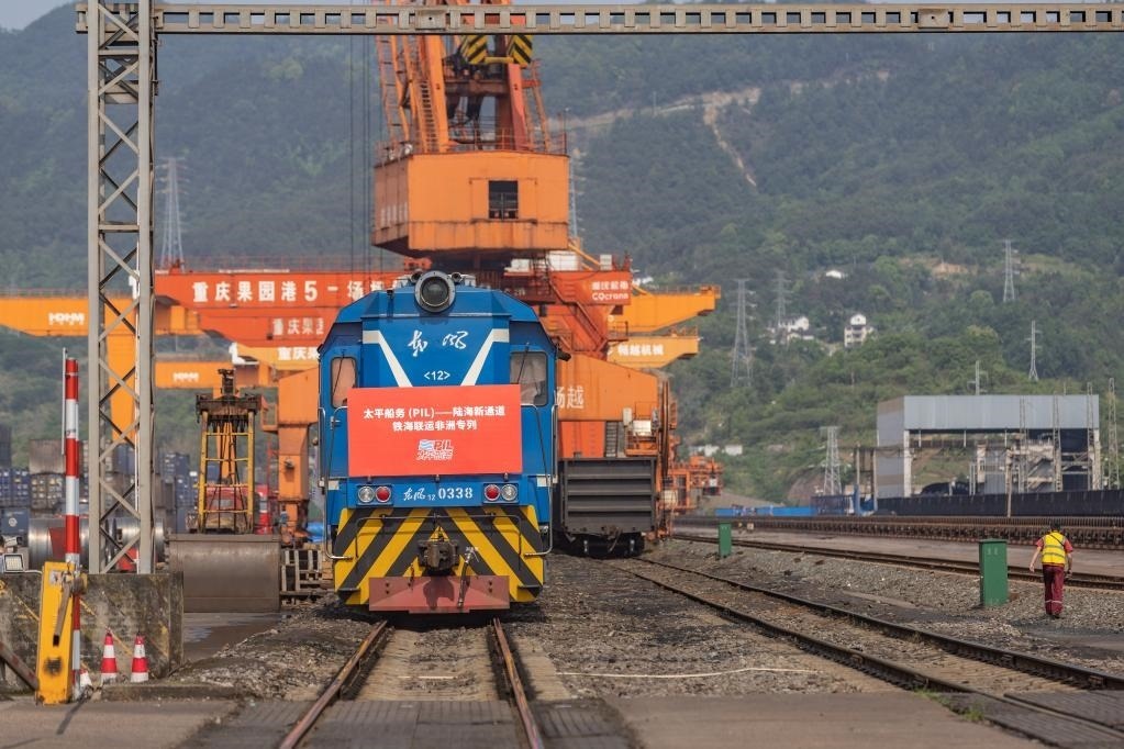 這是2023年4月27日,太平船務(wù)——西部陸海新通道江鐵海聯(lián)運(yùn)非洲專(zhuān)列在重慶果園港魚(yú)嘴站等待發(fā)車(chē)。