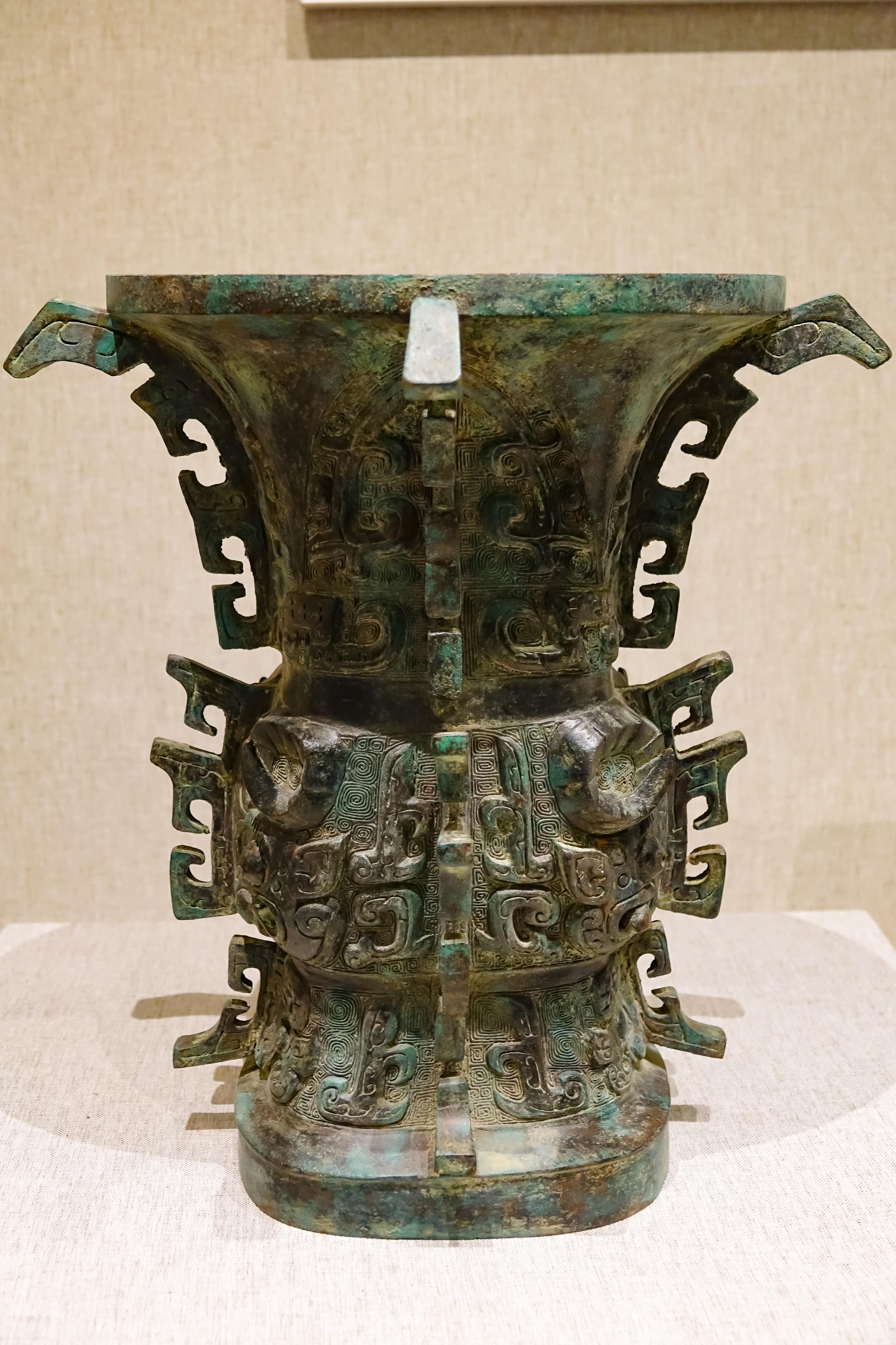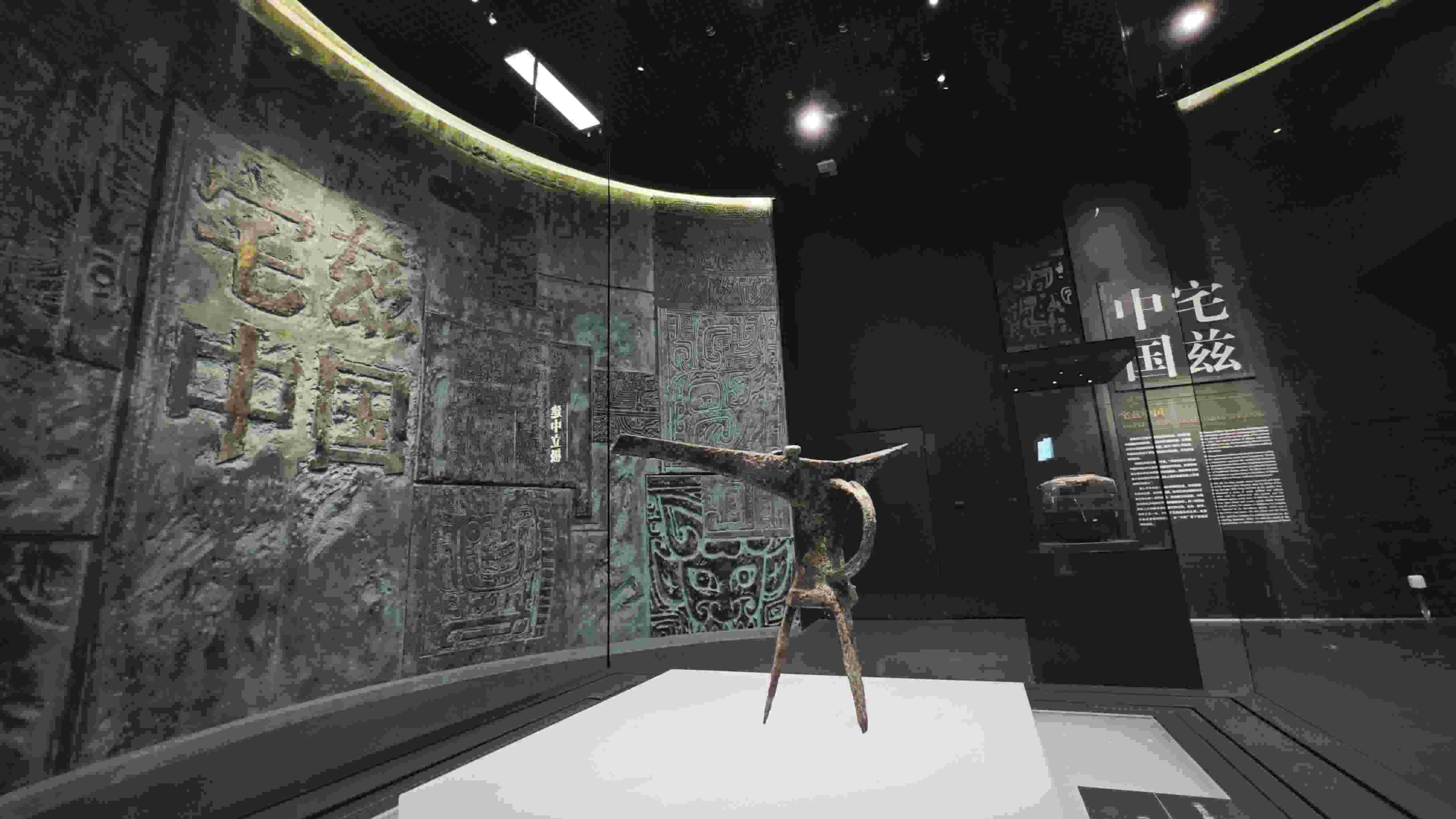 展廳內(nèi),一件造型渾厚、工藝精美的西周早期青銅器——“何尊”熠熠生輝。何尊1963年出土于陜西寶雞,內(nèi)底刻有銘文“宅茲中國”,是目前發(fā)現(xiàn)“中國”二字最早的實物記錄。2020年,習(xí)近平總書記在陜西考察時說,“中國”二字最早見于在陜西出土的青銅器何尊。