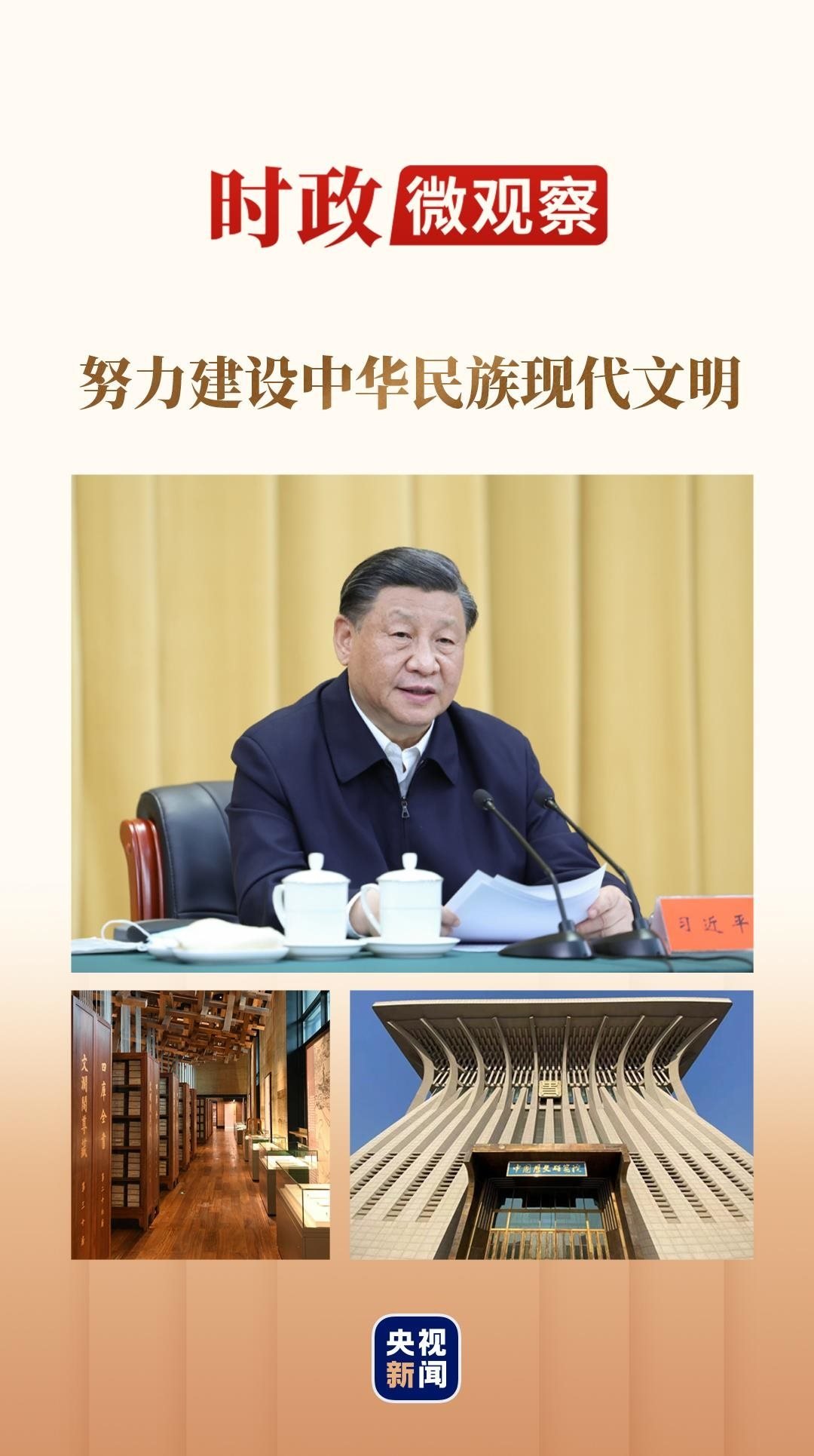 翌日,總書記又乘車來(lái)到中國(guó)歷史研究院,參觀文明起源和宅茲中國(guó)專題展,察看部分館藏珍貴古籍和文獻(xiàn)檔案,寄語(yǔ)“為中國(guó)式現(xiàn)代化建設(shè)貢獻(xiàn)更多中國(guó)史學(xué)的智慧和力量”。