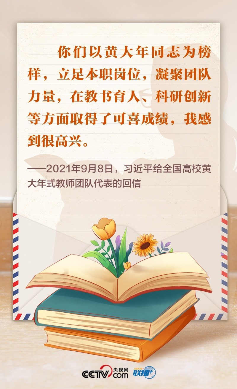 2021年,首批黃大年式教師團(tuán)隊的代表給總書記寫信,匯報教學(xué)、科研等工作情況,表達(dá)了堅守教育報國理想、為民族復(fù)興貢獻(xiàn)力量的決心。總書記回信肯定了大家的工作成效,勉勵大家繼續(xù)學(xué)習(xí)弘揚(yáng)黃大年同志等優(yōu)秀教師的高尚精神,立德修身,潛心治學(xué),開拓創(chuàng)新,真正把為學(xué)、為事、為人統(tǒng)一起來,當(dāng)好學(xué)生成長的引路人。