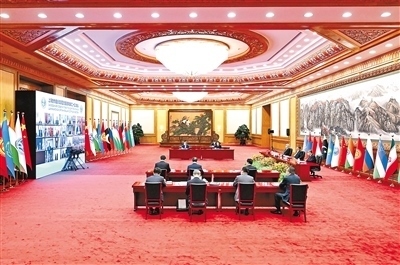 7月4日下午,國家主席習近平在北京以視頻方式出席上海合作組織成員國元首理事會第二十三次會議并發(fā)表題為《牢記初心使命 堅持團結(jié)協(xié)作 實現(xiàn)更大發(fā)展》的重要講話。新華社記者 申 宏攝