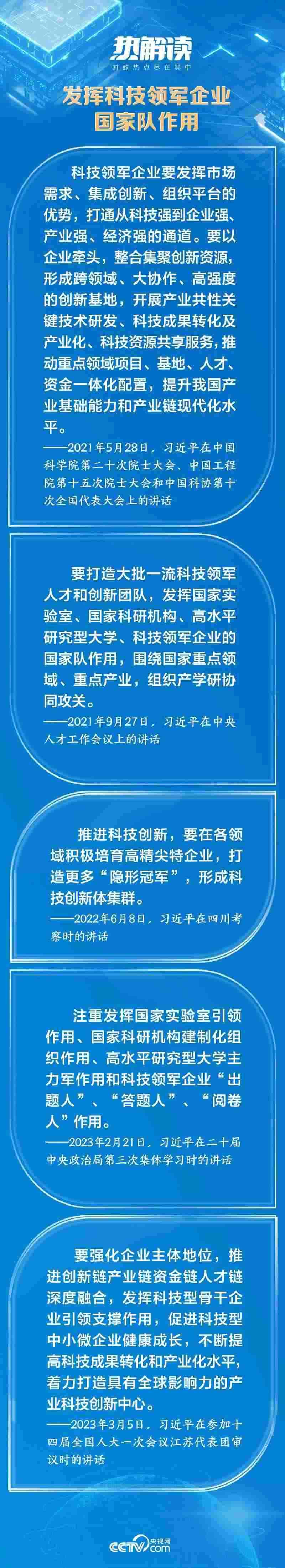 企業(yè)是市場的主體,是推動科技創(chuàng)新的生力軍。作為國家戰(zhàn)略科技力量的重要組成部分,總書記對科技領(lǐng)軍企業(yè)更是寄予厚望:“要自覺履行高水平科技自立自強(qiáng)的使命擔(dān)當(dāng)”,要注重發(fā)揮“科技領(lǐng)軍企業(yè)‘出題人’、‘答題人’、‘閱卷人’作用”。