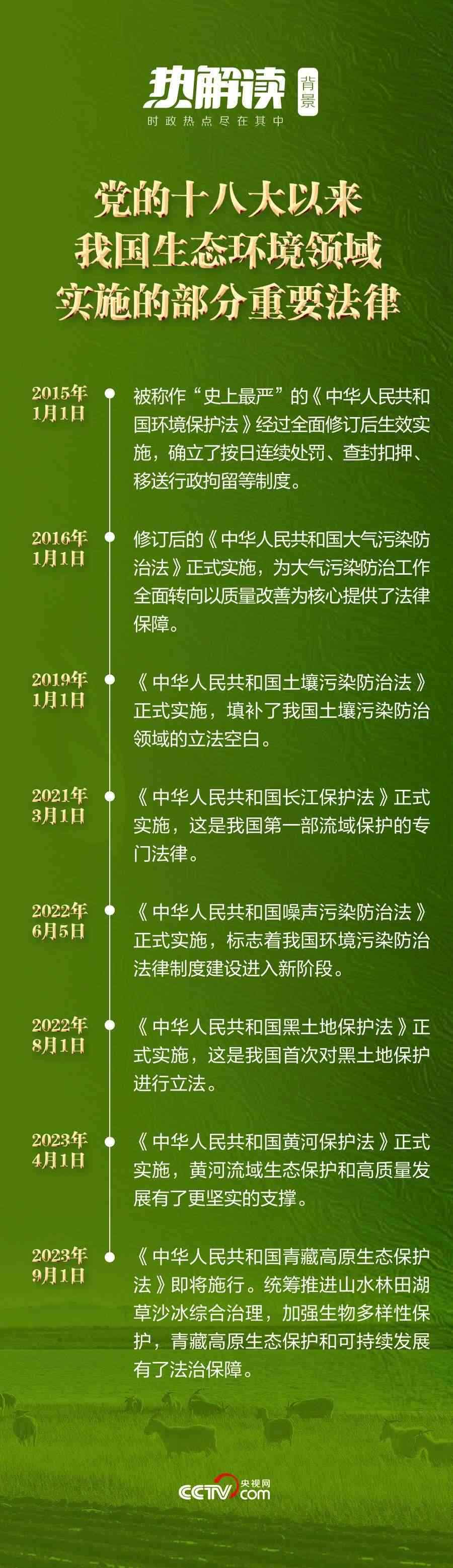 黨的十八大以來(lái),越織越密的生態(tài)文明制度體系成為生態(tài)文明建設(shè)的有力保障。將“生態(tài)文明建設(shè)”寫(xiě)入憲法,制定和修改長(zhǎng)江保護(hù)法、土地管理法、森林法等,我國(guó)生態(tài)環(huán)境立法實(shí)現(xiàn)了從量到質(zhì)的全面提升。