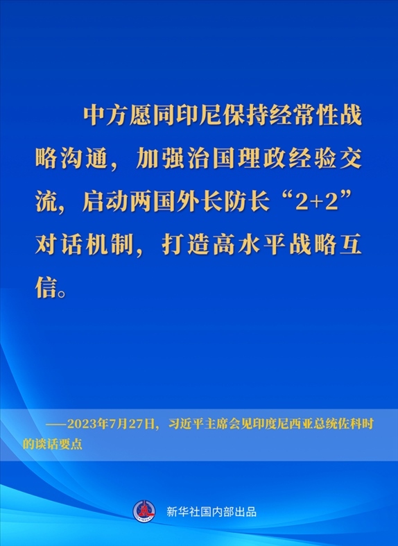 7月27日下午,國(guó)家主席習(xí)近平在成都會(huì)見(jiàn)來(lái)華出席第31屆世界大學(xué)生夏季運(yùn)動(dòng)會(huì)開(kāi)幕式并訪華的印度尼西亞總統(tǒng)佐科。一起來(lái)看習(xí)近平主席在會(huì)見(jiàn)時(shí)的談話要點(diǎn)↓