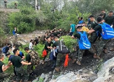 8月5日夜間,搶險人員完成北京房山15公里的軍紅路道路搶修疏通任務,為大安山鄉(xiāng)及周邊1萬余名群眾打通了“生命通道”。