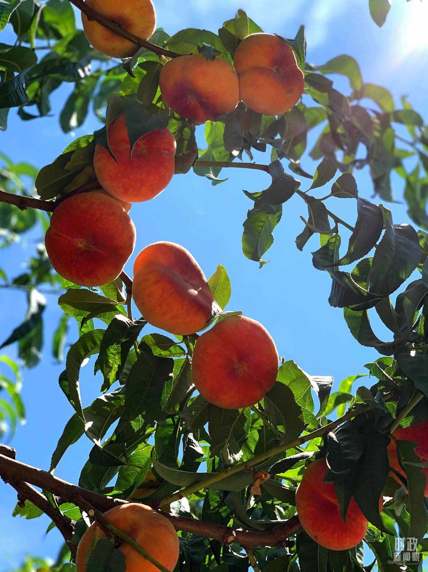 △新疆生產(chǎn)建設(shè)兵團(tuán)八師石河子市的一處蟠桃種植園,呈現(xiàn)豐收景象。(總臺(tái)央視記者段德文拍攝)