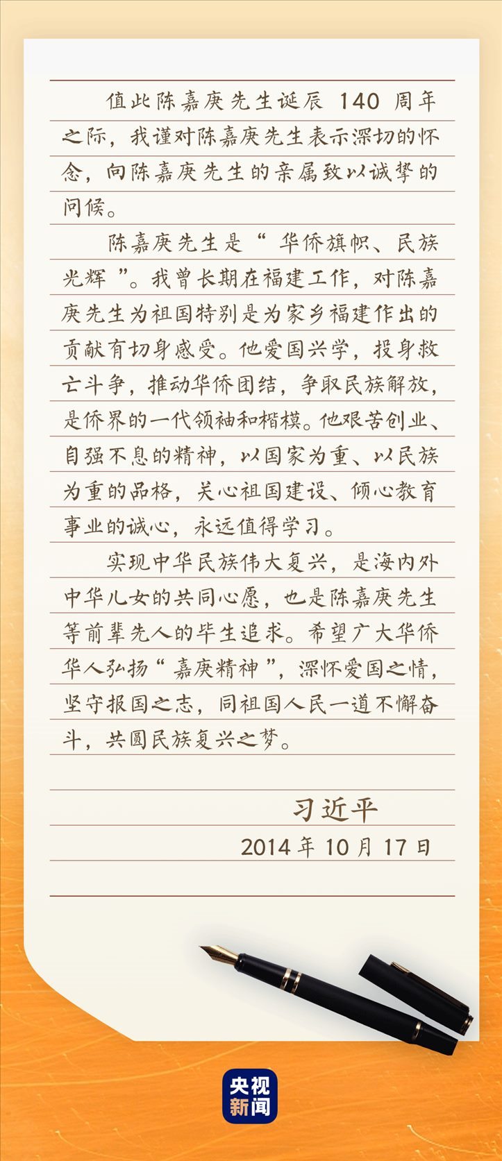 2014年10月21日,福建廈門。紀(jì)念陳嘉庚誕辰140周年座談會(huì)現(xiàn)場(chǎng),雷鳴般的掌聲經(jīng)久不息。習(xí)近平總書記的回信,讓大家激動(dòng)不已——