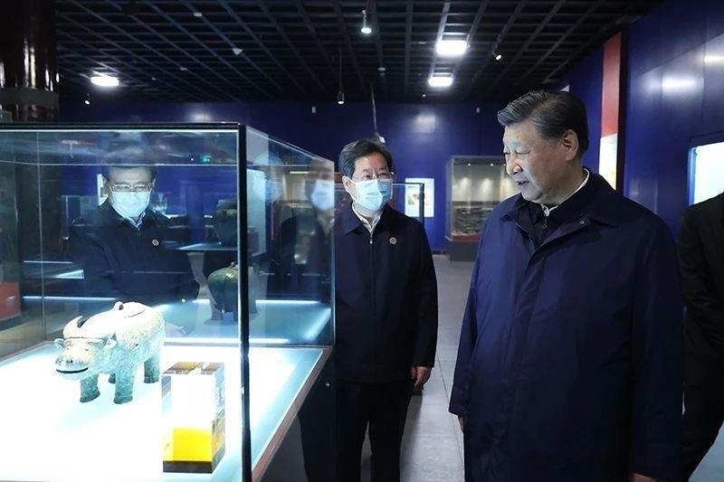 △2022年10月28日,習(xí)近平總書(shū)記在河南安陽(yáng)市殷墟博物館考察。
