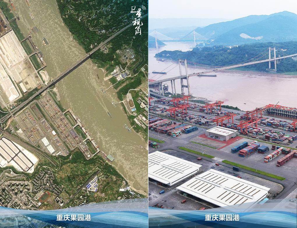 重慶果園港是長江上游第一大港口。習近平來到重慶果園港碼頭前沿平臺,考察長江航運和港口裝卸作業(yè)。