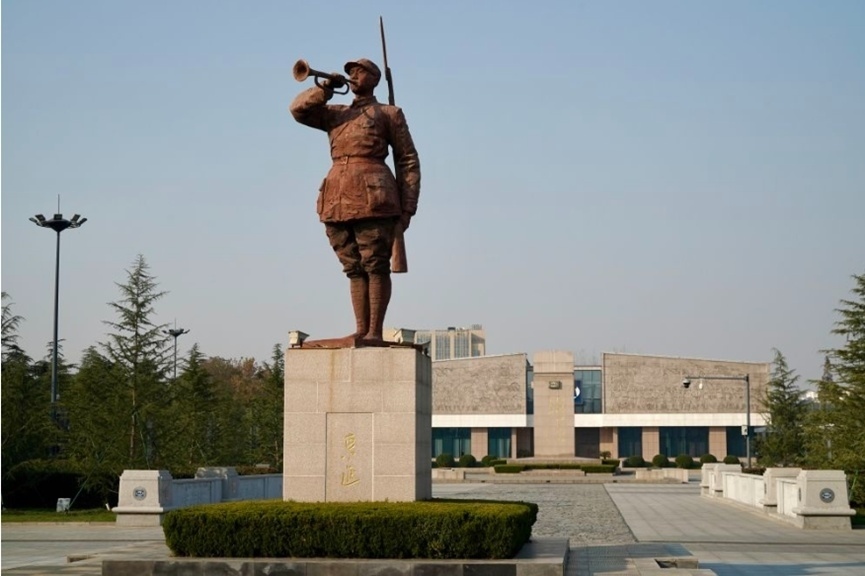 新四軍紀念館廣場上的新四軍雕像。(新華社記者 李博 攝)