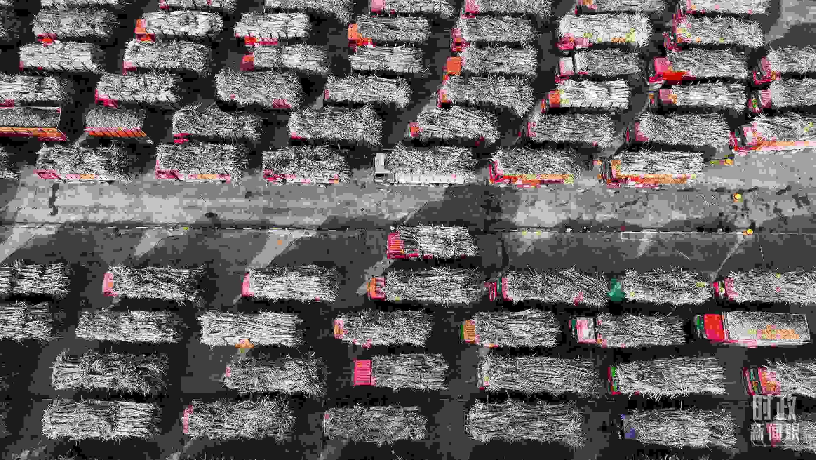 △來賓東糖鳳凰有限公司內(nèi)的甘蔗原料停放區(qū)。(總臺(tái)央視記者范凱拍攝)
