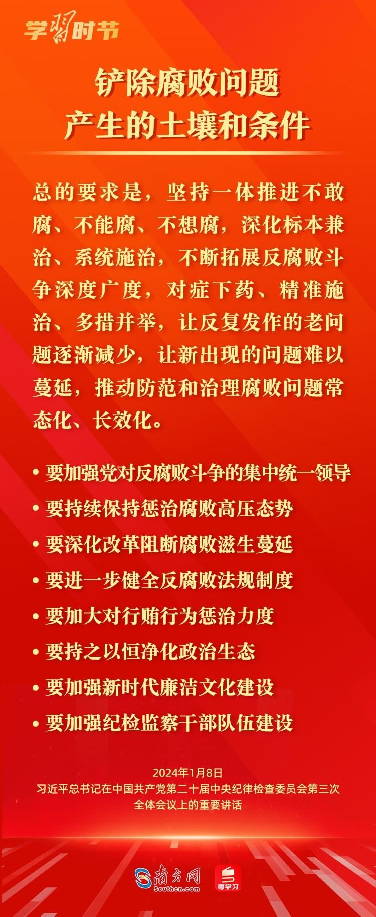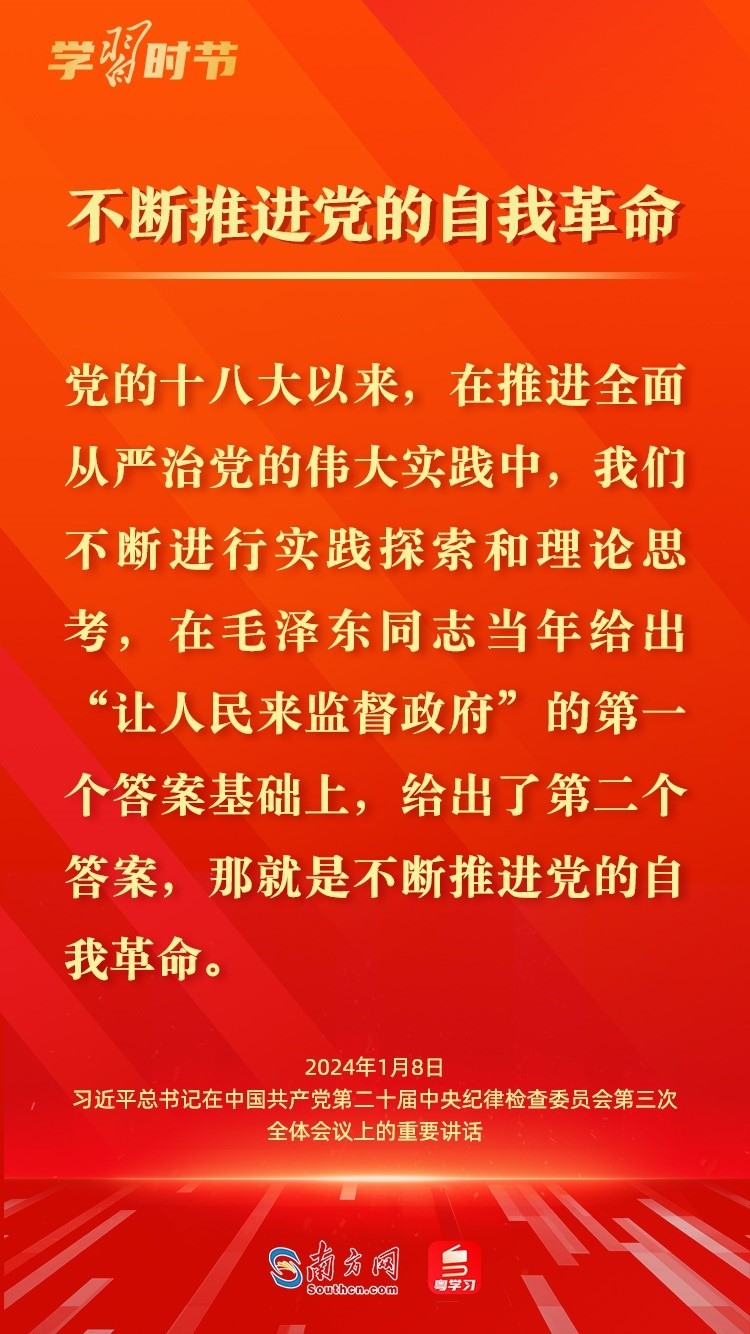 1月8日,中共中央總書(shū)記、國(guó)家主席、中央軍委主席習(xí)近平在中國(guó)共產(chǎn)黨第二十屆中央紀(jì)律檢查委員會(huì)第三次全體會(huì)議上發(fā)表重要講話,深刻闡述黨的自我革命的重要思想,對(duì)持續(xù)發(fā)力、縱深推進(jìn)反腐敗斗爭(zhēng)作出戰(zhàn)略部署。