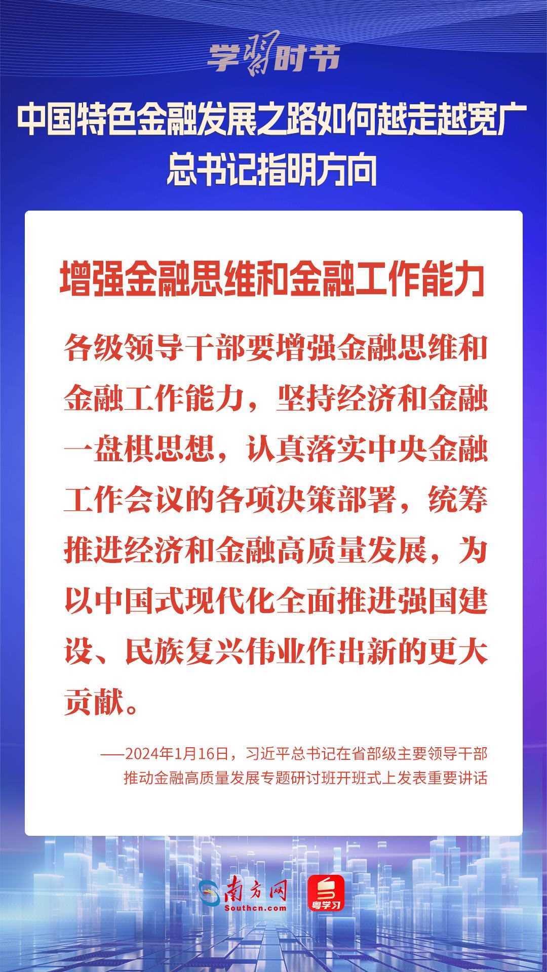 1月16日,中共中央總書記、國家主席、中央軍委主席習近平在省部級主要領導干部推動金融高質量發(fā)展專題研討班開班式上發(fā)表重要講話,為中國特色金融發(fā)展之路指明方向。