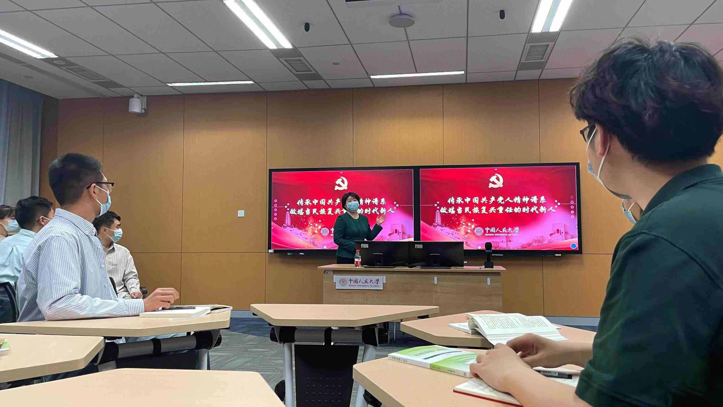 講臺(tái)前,授課教師、中國(guó)人民大學(xué)馬克思主義學(xué)院黨委書記王易正在播放視頻《陜北公學(xué)》,帶領(lǐng)同學(xué)們回顧“中國(guó)不會(huì)亡,因?yàn)橛嘘児钡募t色歷史,重溫人大人心中的延安精神。
