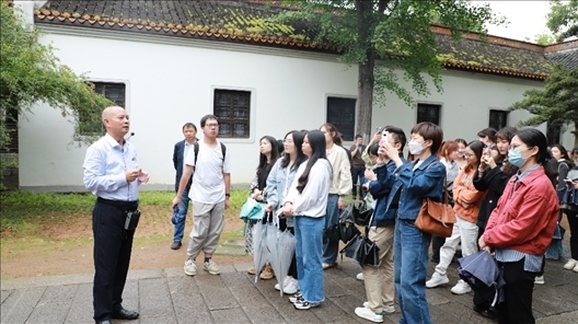 △2023年5月23日,湖南大學(xué)師生正在上以“銘記歷史、緬懷先烈、弘揚(yáng)愛國(guó)奮斗精神”為主題的“移動(dòng)”思政課。