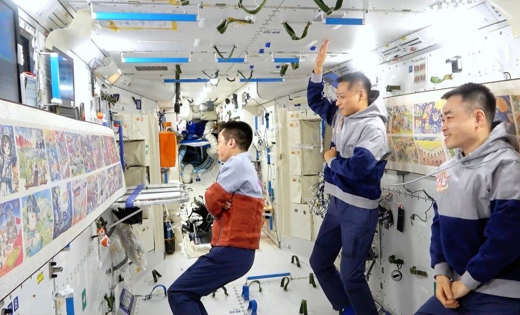 △2024年2月23日,神舟十七號(hào)航天員乘組在軌展示和介紹第三屆“天宮畫展”作品。