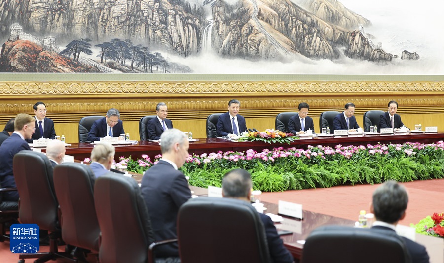 ??美中關(guān)系全國委員會董事會主席格林伯格、黑石集團(tuán)董事長兼首席執(zhí)行官蘇世民、高通公司總裁兼首席執(zhí)行官安蒙、哈佛大學(xué)肯尼迪政府學(xué)院創(chuàng)始院長艾利森、美中貿(mào)易全國委員會會長艾倫等美方代表在發(fā)言中感謝習(xí)近平主席撥冗會見。他們表示,過去幾十年來,中國實(shí)現(xiàn)了非凡經(jīng)濟(jì)增長和轉(zhuǎn)型,體現(xiàn)了強(qiáng)大韌性和活力。在習(xí)近平主席卓越領(lǐng)導(dǎo)下,中國致力于發(fā)展新質(zhì)生產(chǎn)力,實(shí)現(xiàn)更可持續(xù)的高質(zhì)量發(fā)展。中國人民的發(fā)展權(quán)利應(yīng)該得到尊重。相信中國將實(shí)現(xiàn)自身發(fā)展目標(biāo),促進(jìn)世界經(jīng)濟(jì)發(fā)展和融合。一個(gè)強(qiáng)大、繁榮的中國是世界的正能量。美中經(jīng)濟(jì)關(guān)系緊密依存,兩國唯有和平共處,才能實(shí)現(xiàn)各自發(fā)展繁榮?!靶尬舻椎孪葳濉辈⒎潜厝?。美國企業(yè)贊賞中方近期出臺的一系列進(jìn)一步改革開放的重要舉措,看好中國經(jīng)濟(jì)發(fā)展前景,將堅(jiān)定不移繼續(xù)深耕中國,同中國發(fā)展長期緊密的合作關(guān)系。習(xí)近平主席同拜登總統(tǒng)去年11月在舊金山成功會晤,提振了美國各界和世界對美中關(guān)系未來的預(yù)期和信心。美國工商界和戰(zhàn)略學(xué)術(shù)界支持美中雙方加強(qiáng)各層級交往交流,增進(jìn)相互理解、信任與合作,攜手應(yīng)對全球性挑戰(zhàn),推動(dòng)建立穩(wěn)定、可持續(xù)、富有成效的美中關(guān)系。