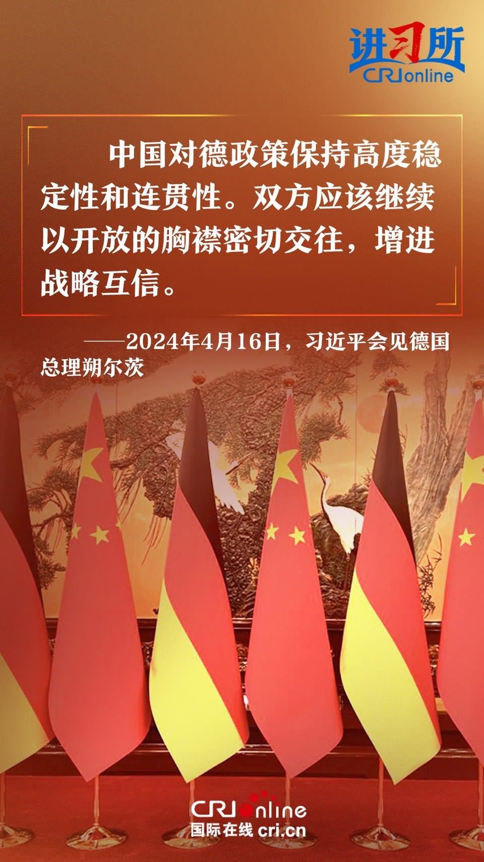 4月16日上午,中國國家主席習(xí)近平在北京釣魚臺國賓館會見了德國總理朔爾茨。習(xí)近平指出,中德合作對雙方有利,對世界有利。世界越是動蕩,雙方越要提升兩國關(guān)系的韌性和活力。中德是世界第二、第三大經(jīng)濟(jì)體,鞏固和發(fā)展中德關(guān)系的意義超越雙邊關(guān)系范疇,對亞歐大陸乃至整個世界都有重要影響。兩國要從長遠(yuǎn)和戰(zhàn)略角度看待和發(fā)展雙邊關(guān)系,攜手為世界注入更多穩(wěn)定性和確定性。