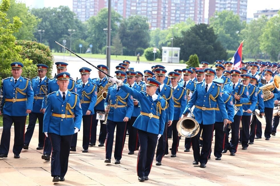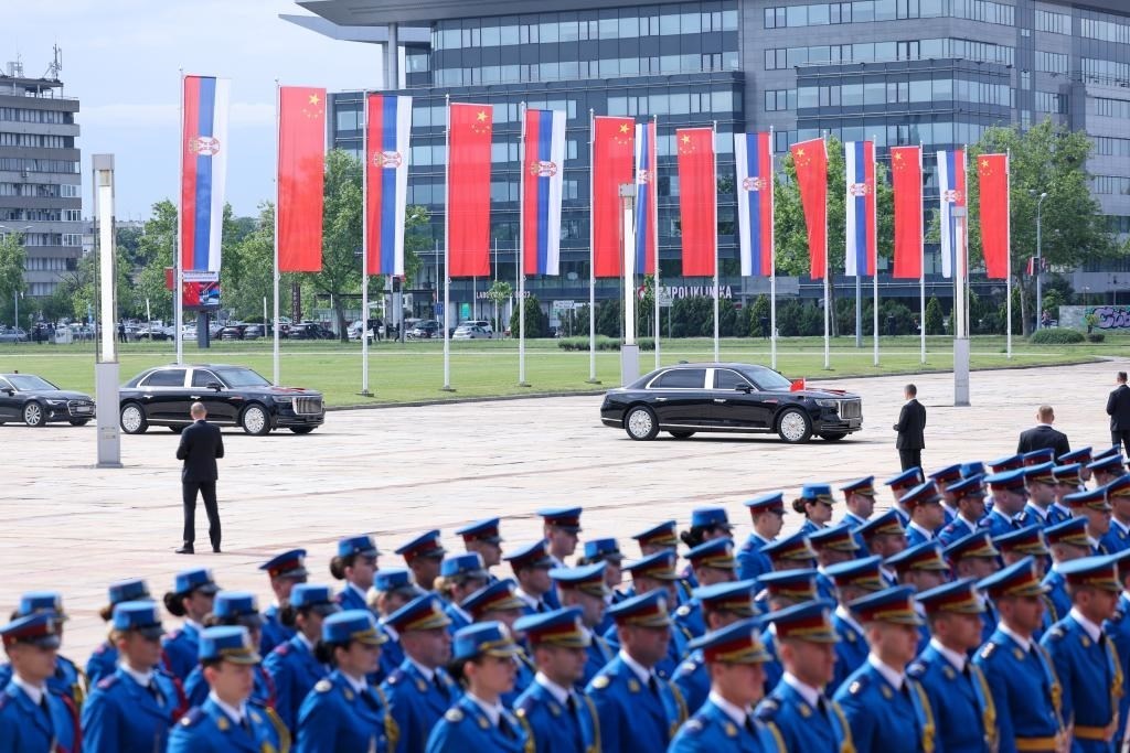 當(dāng)?shù)貢r(shí)間5月8日,國(guó)家主席習(xí)近平在貝爾格萊德出席塞爾維亞總統(tǒng)武契奇舉行的隆重盛大歡迎儀式。歡迎儀式在塞爾維亞大廈南廣場(chǎng)舉行。兩國(guó)元首共同登上檢閱臺(tái),軍樂(lè)團(tuán)奏響中塞兩國(guó)國(guó)歌,鳴10響禮炮。習(xí)近平在武契奇陪同下檢閱儀仗隊(duì)。