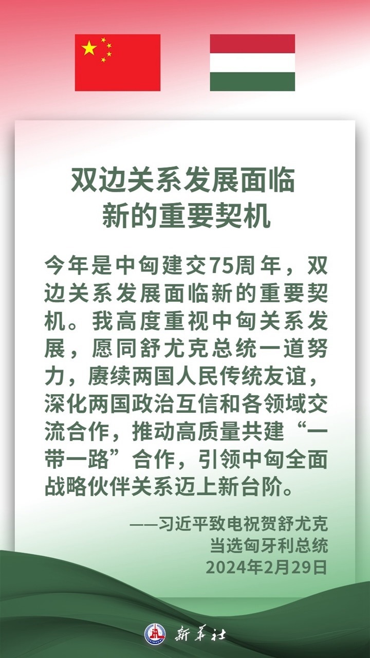 匈牙利是中東歐地區(qū)重要國(guó)家,是中方推進(jìn)共建“一帶一路”及中國(guó)-中東歐國(guó)家合作的重要合作伙伴。近年來(lái),在兩國(guó)領(lǐng)導(dǎo)人的戰(zhàn)略引領(lǐng)下,中匈關(guān)系保持高水平發(fā)展,兩國(guó)高層交往密切,政治互信持續(xù)深化,各領(lǐng)域合作扎實(shí)推進(jìn)、成果豐碩,為兩國(guó)人民帶來(lái)切實(shí)利益。習(xí)近平主席說(shuō),中方愿同匈方繼續(xù)做彼此信賴(lài)、合作共贏(yíng)的好朋友、好伙伴。