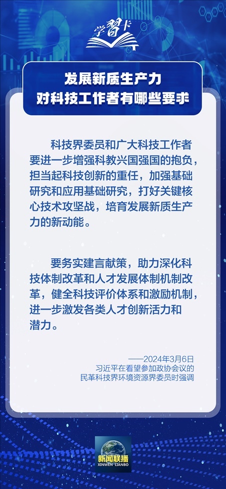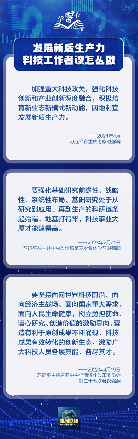 2024年5月30日是第八個(gè)“全國科技工作者日”。實(shí)現(xiàn)科技自立自強(qiáng)、建設(shè)世界科技強(qiáng)國,廣大科技工作者責(zé)任重大、使命光榮。培育發(fā)展新質(zhì)生產(chǎn)力的新動能,廣大科技工作者可以怎么做?習(xí)近平總書記的一系列論述指明了方向。一起學(xué)習(xí)↓↓↓