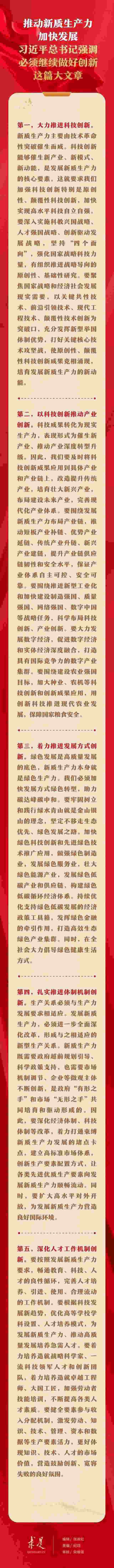 6月1日出版的第11期《求是》雜志刊發(fā)習(xí)近平總書記重要文章《發(fā)展新質(zhì)生產(chǎn)力是推動高質(zhì)量發(fā)展的內(nèi)在要求和重要著力點》。在這篇重要文章中,習(xí)近平總書記從科技創(chuàng)新、產(chǎn)業(yè)創(chuàng)新、發(fā)展方式創(chuàng)新、體制機(jī)制創(chuàng)新、人才工作機(jī)制創(chuàng)新等五個方面,對推動新質(zhì)生產(chǎn)力加快發(fā)展提出明確要求。