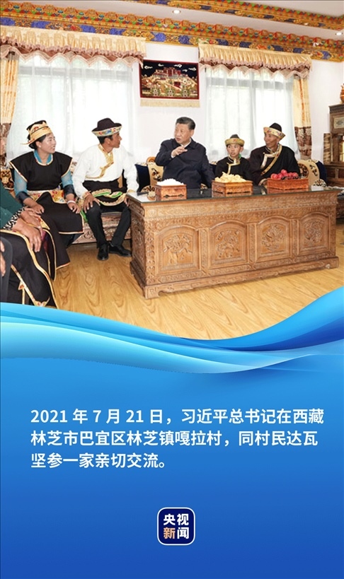 2021年的西藏考察,是習(xí)近平總書記闊別10年后的再次踏訪。3天的行程,從林芝到拉薩,此起彼伏的“扎西德勒”,載歌載舞的各族群眾,哈達、熱巴鼓、切瑪、青稞酒,幸福的日子宛如綻放的格?;ā?/p>