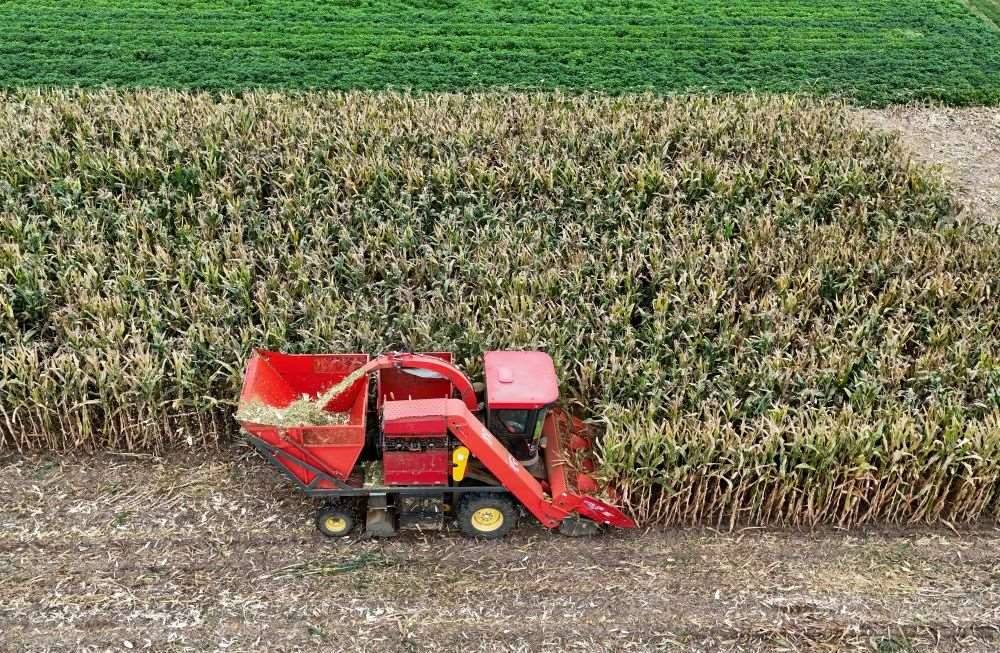 9月11日,河南省寶豐縣鬧店鎮(zhèn)司莊村農(nóng)民駕駛農(nóng)機收獲玉米。新華社發(fā) (何五昌攝)