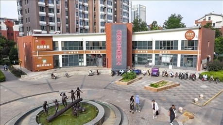 這是2024年6月20日拍攝的寧夏銀川市金鳳區(qū)長(zhǎng)城花園社區(qū)日間照料中心(無(wú)人機(jī)照片)。新華社記者 馮開華 攝