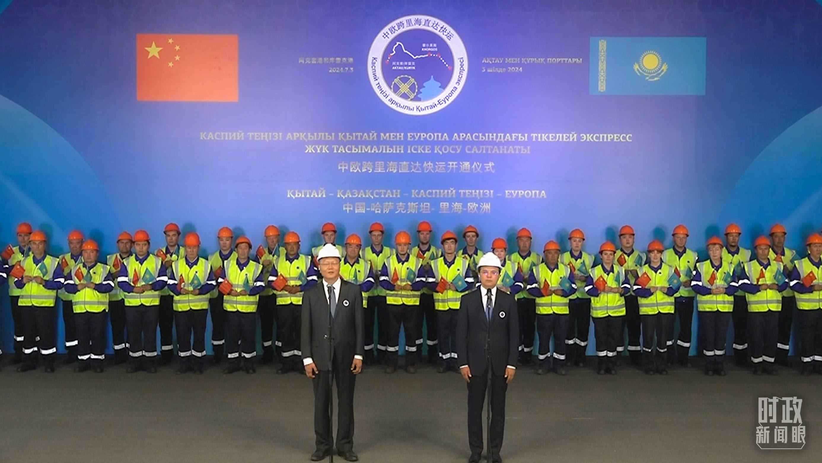 △中歐跨里海直達快運開通儀式現(xiàn)場。