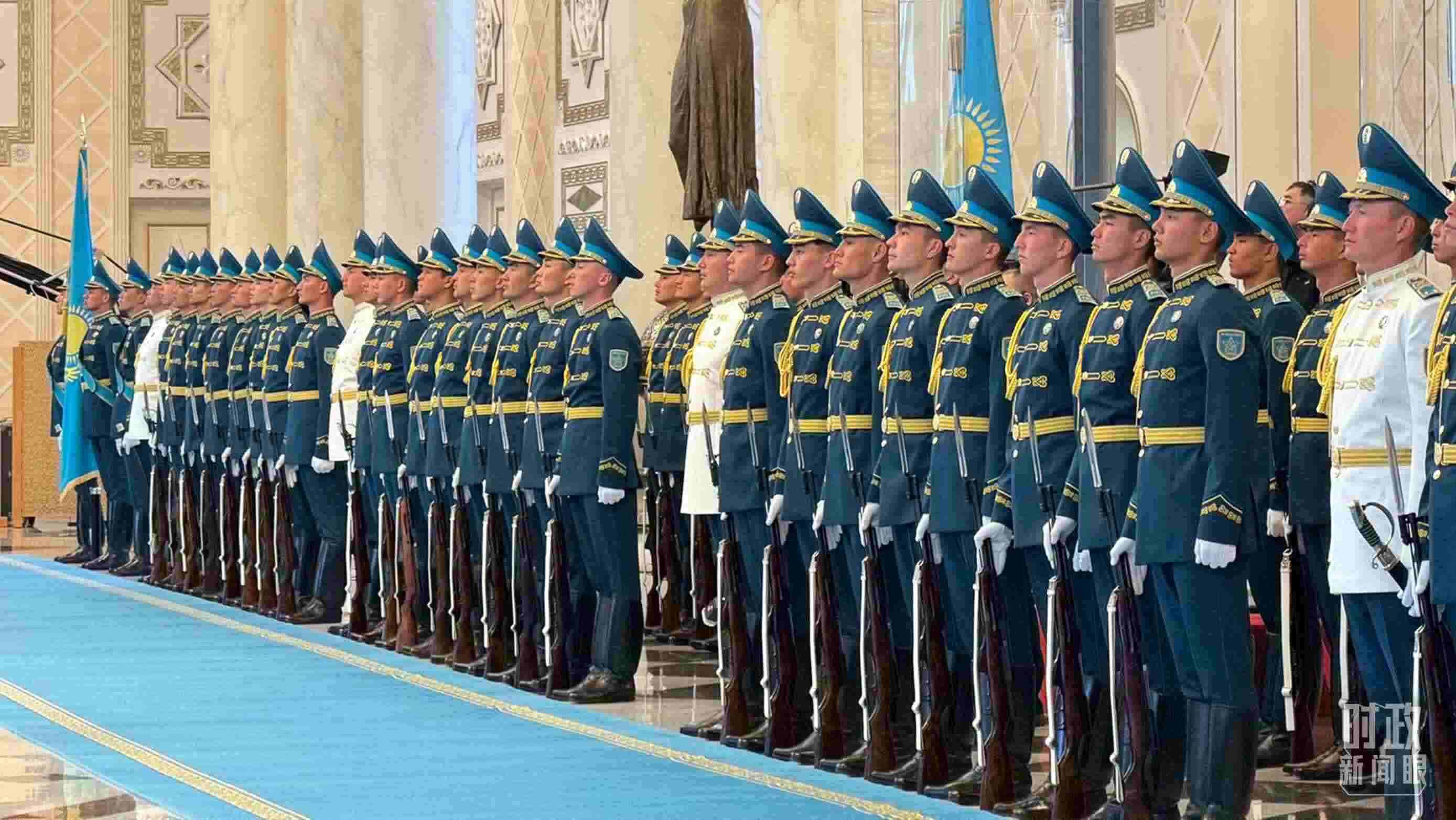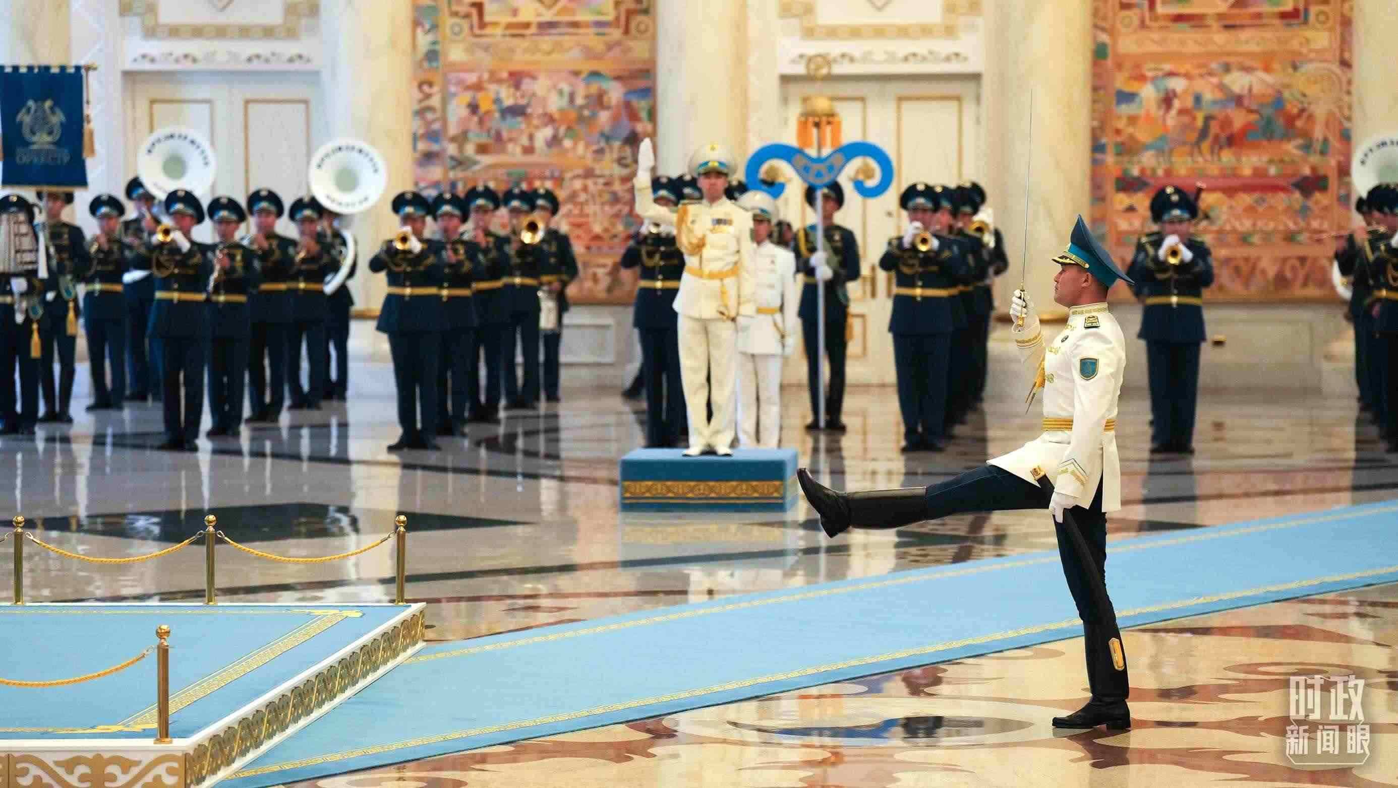 △哈薩克斯坦總統(tǒng)府禮兵。(總臺央視記者程鋮、蔣碩拍攝)